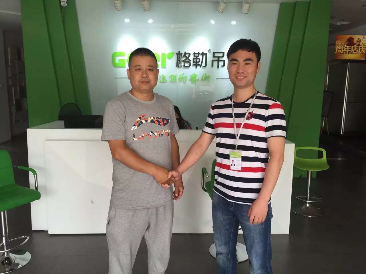 格勒集成吊頂在一周之內(nèi)成功牽手2家格勒專(zhuān)賣(mài)店,不斷壯大的格勒大家庭呈現(xiàn)出蓬勃的向上力,本次貴州興義望漠的葉先生,福建南平建陽(yáng)練先生成功選擇格勒,相信格勒,定會(huì)和格勒吊頂共贏未來(lái)!