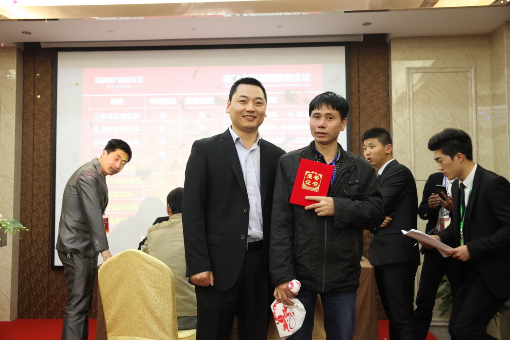 下午的招商會議于12:30準時在主持人的宣布聲中拉開帷幕,首先是格勒集成吊頂公司總經(jīng)理徐惠峰作大會開場致辭并分析了目前吊頂市場的概括,會上還詳細介紹了格勒集成吊頂最新的三維軟件和公司DRP系統(tǒng),著重介紹了格勒天貓O2O戰(zhàn)略,接著便是招商經(jīng)理為會人員介紹格勒吊頂對經(jīng)銷商的市場扶持和優(yōu)勢政策,為參會者細致地描述扶持政策,你開店我投資,你開業(yè)我送單。臺下與會人員聽后更是喜上眉梢,這無疑是讓更多的加盟商看到加盟格勒的前景。各與會人員在對格勒有了一個整體的認識之后,接二連三上臺與格勒簽約,在音樂聲中,貴州銅仁碧江、湖南郴州桂陽、安徽亳州譙城區(qū)江西上饒弋陽縣、安徽淮南、江蘇無錫宜興、江蘇常州武進區(qū)等地區(qū)與會人員與格勒真正成為相親相愛的一家人,相信在未來的日子里定能勇攀財富的高峰!
