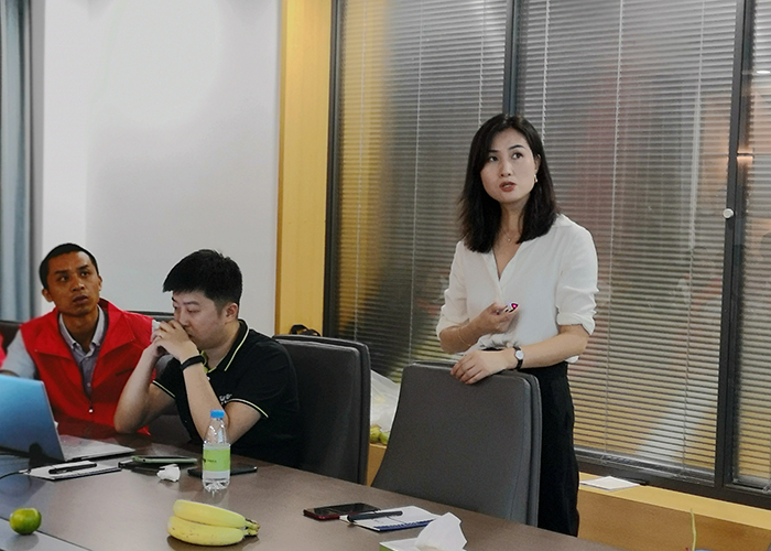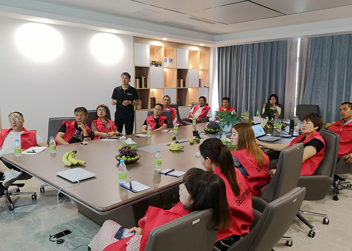 參觀完畢后,眾人來到會場。富經(jīng)理對剛剛在參觀過程中的分享進行總結(jié),并為大家?guī)韺崙?zhàn)案例的分析。