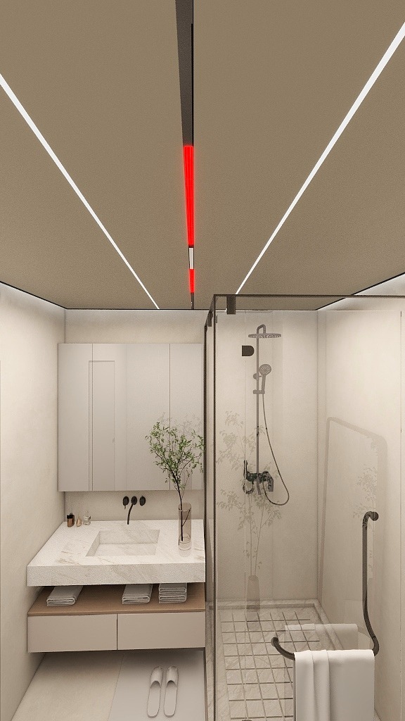 同樣的蜂窩大板也可以運(yùn)用到衛(wèi)生間中,避免空間顯得太過雜亂,形成大氣統(tǒng)一的風(fēng)格效果,高級感迎面而來。